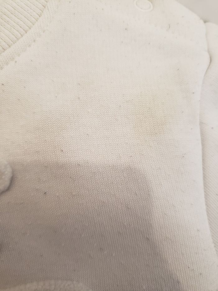 Il y a quelques tâches légères que l'on voit à peine sauf en regardant de près. Je vous les ai mises en photos. Sinon il est en très bon état.