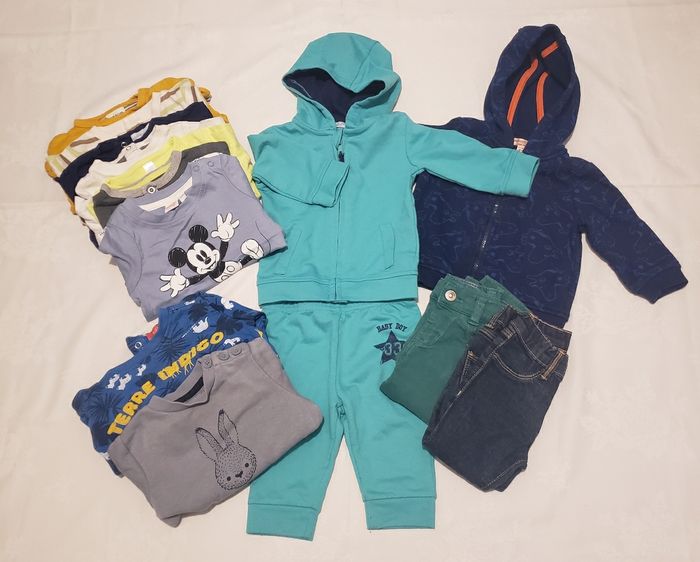 8 t-shirts à manches longues des marques Disney baby, Tape à l'œil, Boite à malices, Tissaia, Tex, Kiabi, Bébérêve
