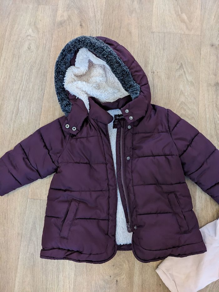 Un manteau monoprix couleur prune et interieur blanc rosé. Chaud. Bout chou 36 mois. Bien porté mais OK. Un manteau okaidi couleur rose avec interieur gris chiné. 3 ans. Plusieurs taches a l extérieur, donc il est offert avec l autre manteau ☺️ Par rapport a l autre, c est plus un manteau de printemps/fin d hiver