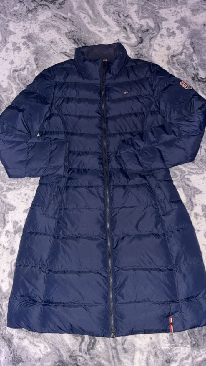 Doudoune Tommy Hilfiger Denim longue, chaude et confortable, idéale pour l’hiver.