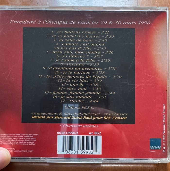 "💰💰Prix négociable💰💰 Prix dégressif pour plusieurs cd Pour trouver le reste : 🎵 MUSIQUE CD, cassette, Vinyle 🎵 #musiquejo30 🎵 📦📦Pour les ventes à distance, 📦📦 Les envois sont rapides et soignés. 💶 💶 Vous pouvez bénéficier de réductions pour les achats par lots, et d’une réduction des frais de port 💶 💶 🇫🇷 Je suis du Gard (30), Une vente en main propre est possible. ❓ N’hésitez pas à me contacter pour toute question❓"