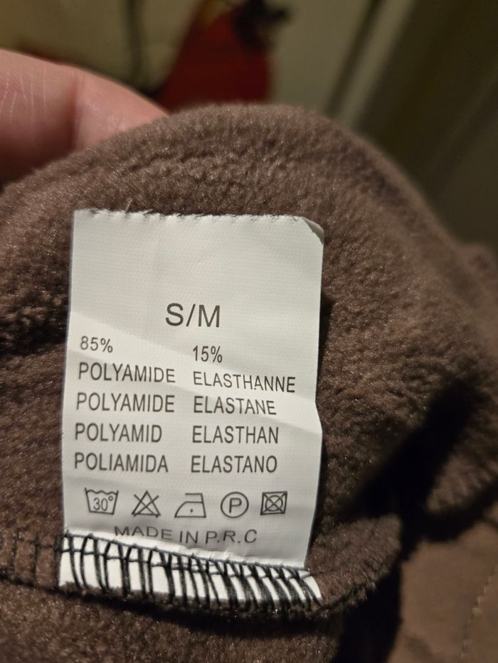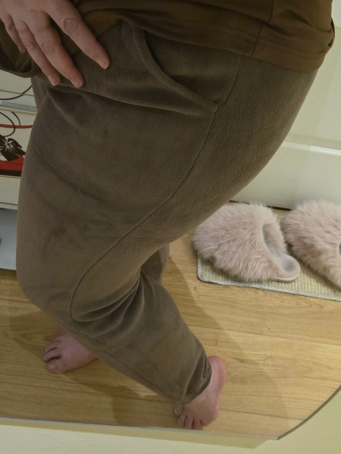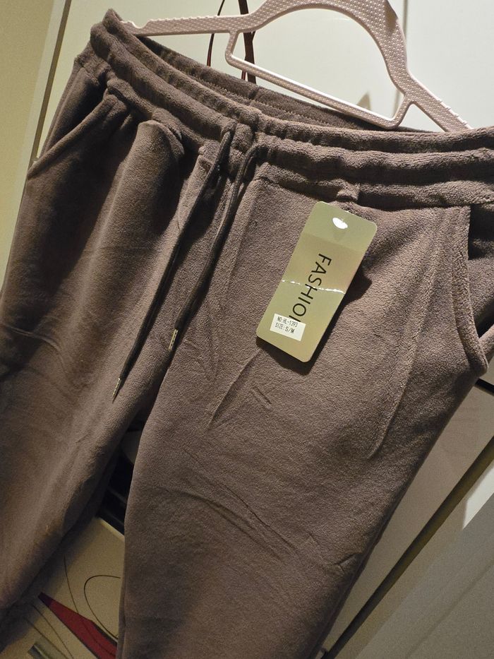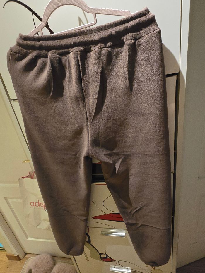 Pantalon confort marron clair au touché polaire doux et à la coupe droite/slim, avec taille et chevilles élastiquées, cordon de serrage et 2 poches. Neuf avec étiquette. Taille : S/M convenant d'un 36/38 jusqu'à un 42/44 max. Dimensions : 34-48 cm de large à la taille, 27 cm de largeur max de cuisse, 14 cm de largeur de bas de jambe, 66 cm de longueur de jambe depuis l'aine et 96 cm de longueur totale. Matières : 85% polyamide et 15% élasthanne. Pas d'échange, merci. Envoi rapide via Mondial Relay.