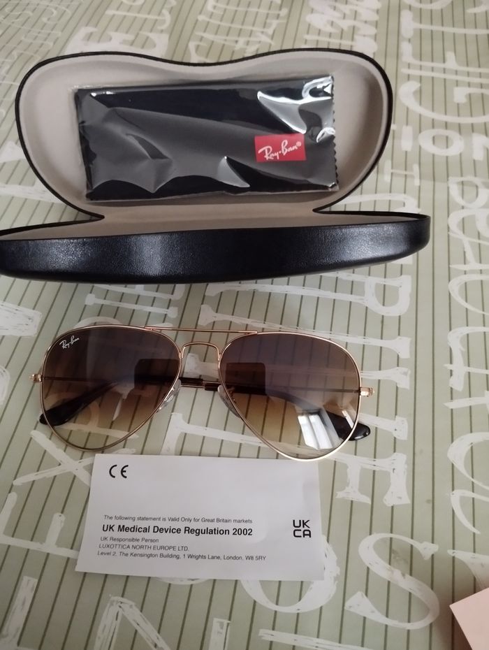 A vendre lunette solaire d aviator Ray Ban neuve unisexe jamais porté ref RB3025 une monture fine et légère de bonne qualité et un confort élevé couleur des verres est un marron dégradé catégorie de protection 2 non polarisé avec boîte d origine et 2 lingettes