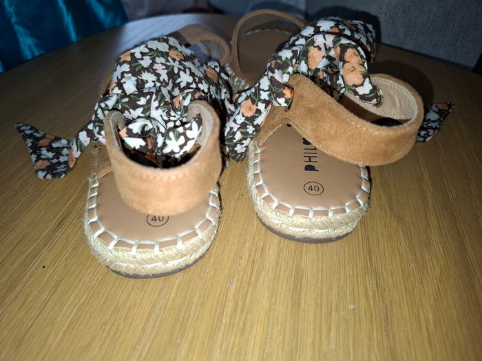 Sandales à nouer Philov (chaussea) Pointure 40 Tissu décousu à un endroit (voir photo)