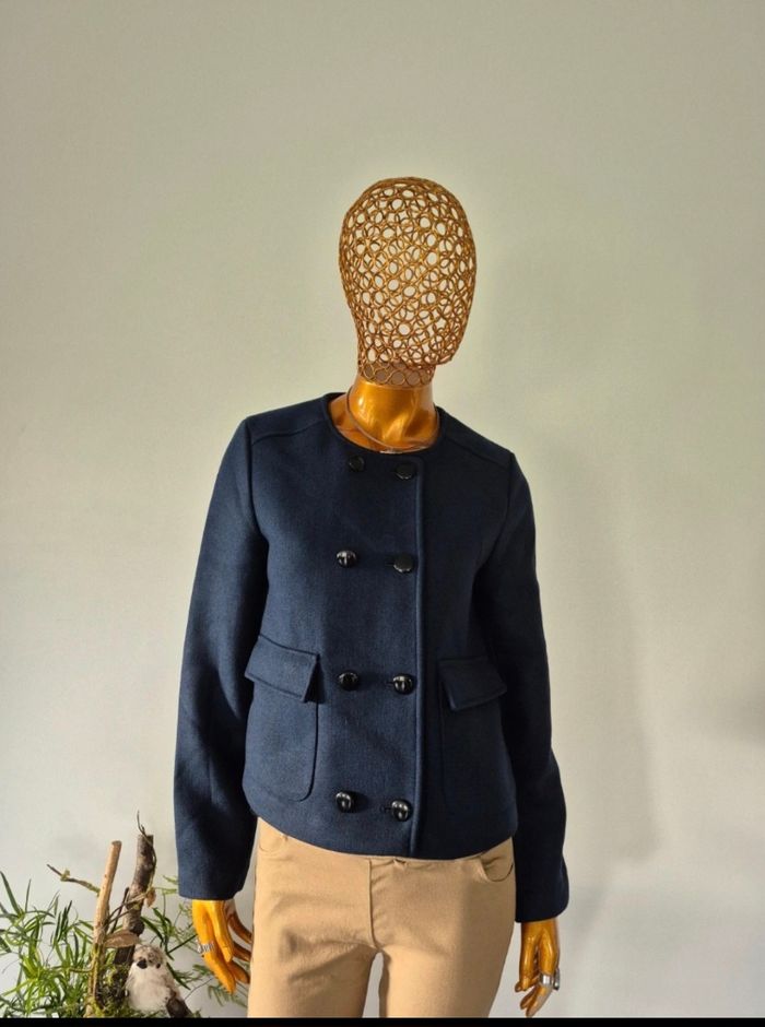 🧥 Blouson Court avec Boutons Bleu Marine Femme