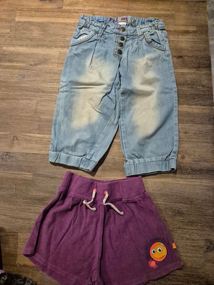 Le lot comprends une veste, un tee shirt un débardeur, un short un pantacourt 2 pantalons Quelques défauts voir photo