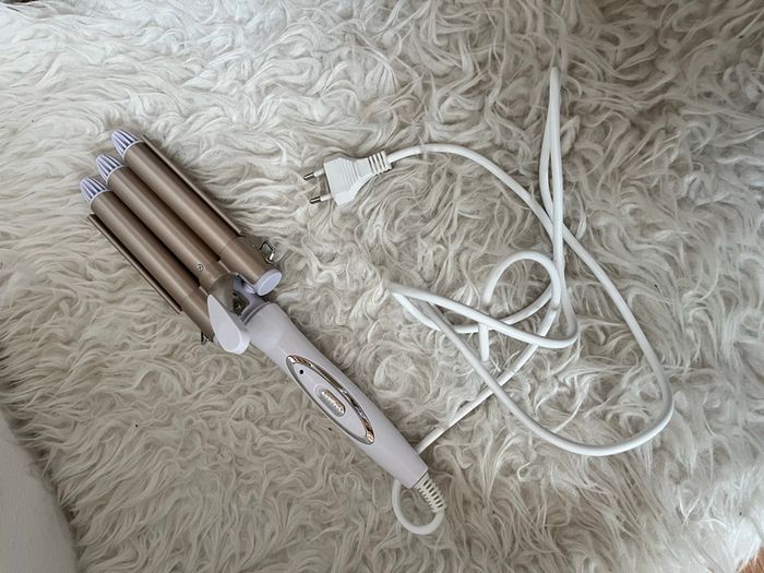 Boucleur fer à onduler triple barils 22m Reyke beach waves naturel blanc/doré TBE 🪮 - photo numéro 1