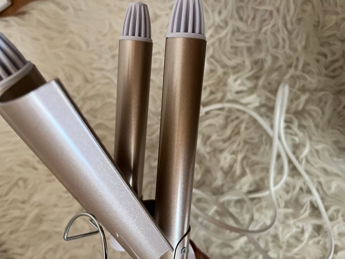 Boucleur fer à onduler triple barils 22m Reyke beach waves naturel blanc/doré TBE 🪮 - photo numéro 4