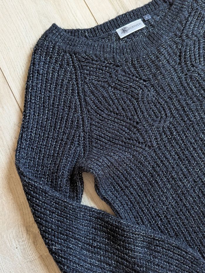 Maille texturée avec un léger effet brillant, idéale pour une tenue chic et cosy.