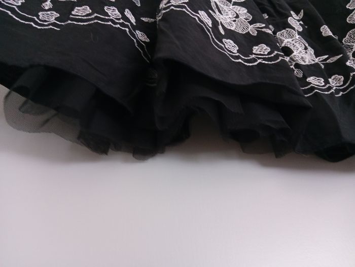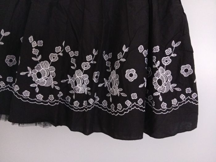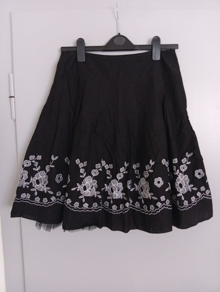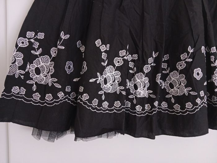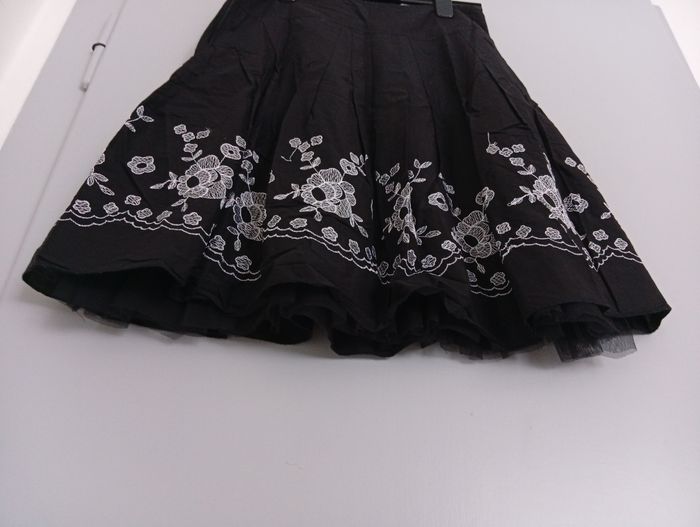 Très pin-up. Jolie sous-jupe effet bouffant. Jolies broderies fleurs blanches. Coton, polyester. C12