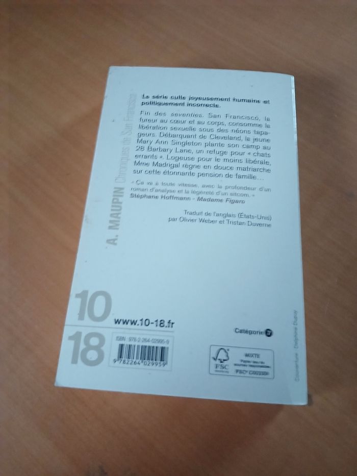 LIVRE LES CHRONIQUES DE SAN FRANSISCO DE ARMISTEAD MAUPIN TRES BON ETAT EDITION 10/18