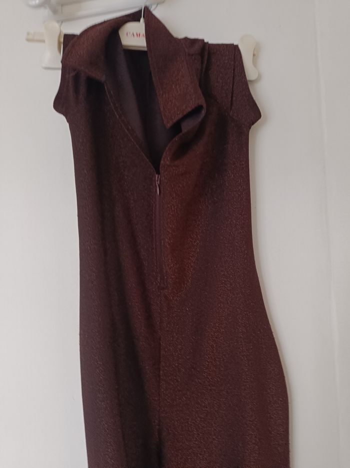 Couleur : Marron foncé avec un fini pailleté/irisé cuivré qui accroche la lumière.