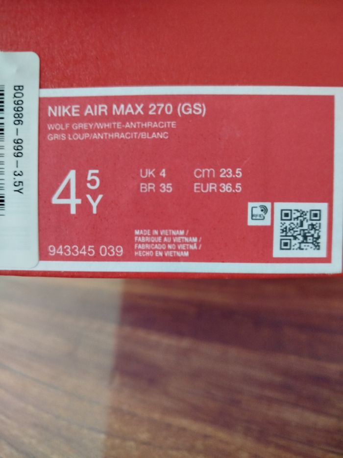 Basket Nike air Max 270 Taille 36.5 100% AUTHENTIQUE JAMAIS PORTÉ Envoi rapide Boîte sans couvercle
