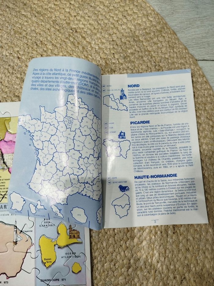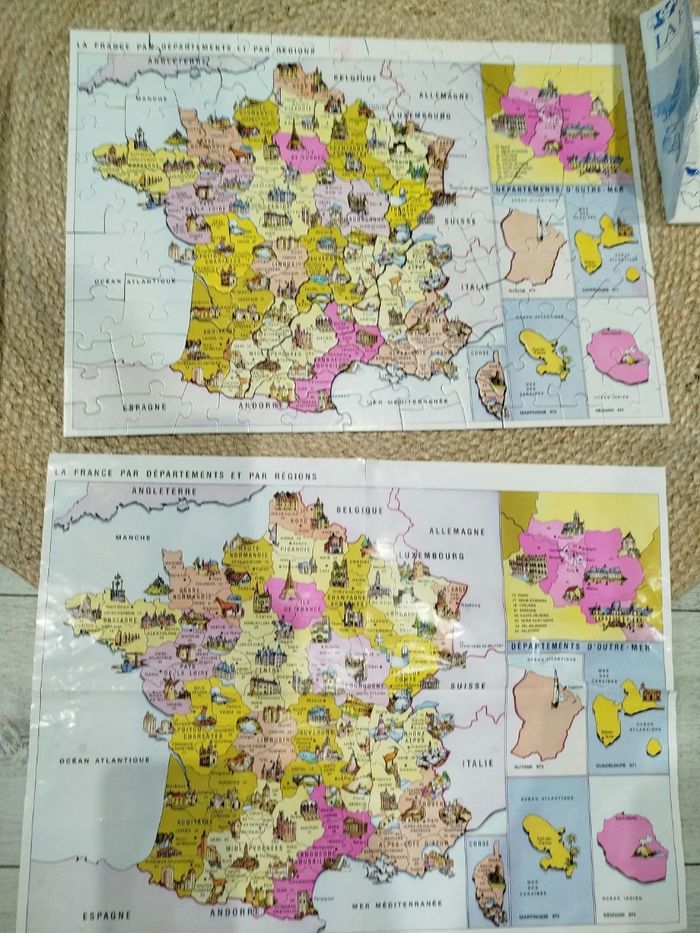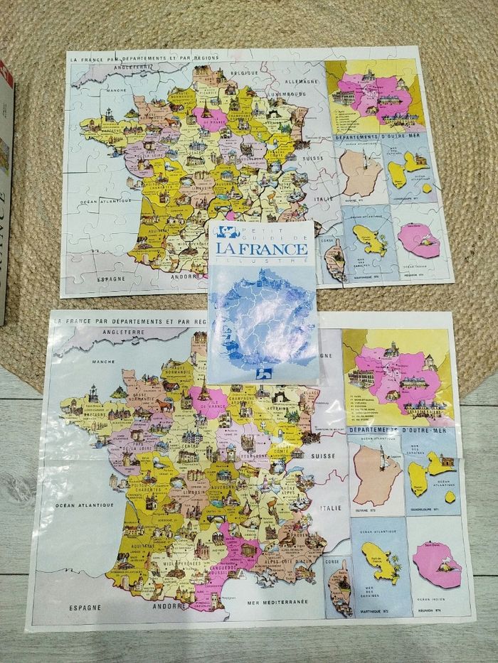 Vends puzzle, vintage des années 1990 et complet, La carte de France et ses régions ( anciennes régions administratives). Jeu complet comprenant un poster, une notice explicative avec les régions et les départements, dans sa boîte d'origine. En très bon état général. Puzzle à partir de 8 ans, de chez Nathan. N'hésitez pas à visiter mon dressing, nombreux articles disponibles pour femme et enfants (garçon et fille).