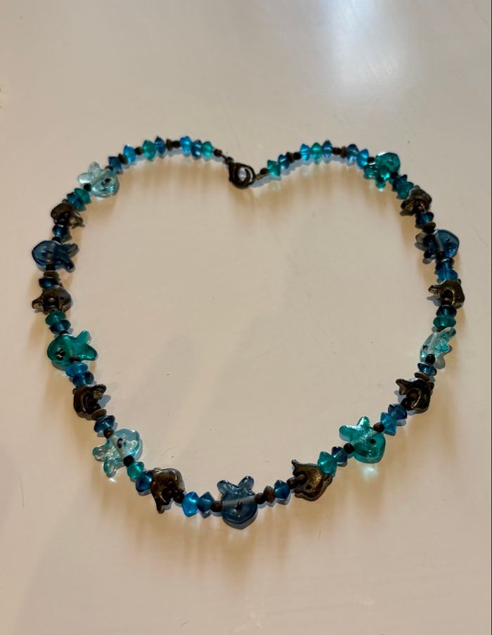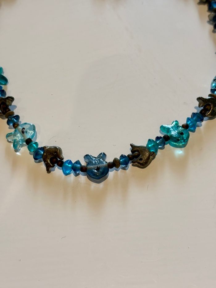 💍Types d’article : Collier bleu avec des poissons et des dauphins