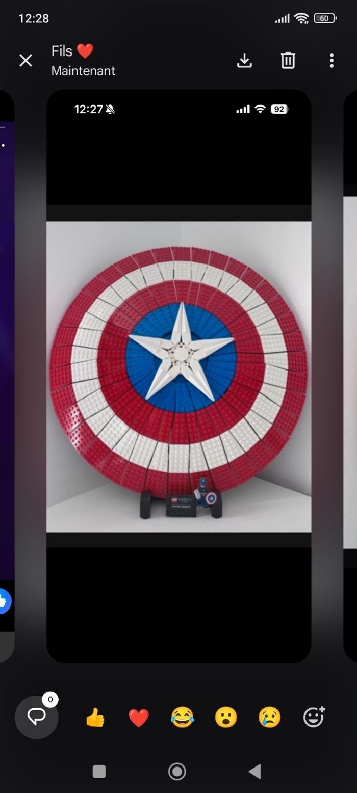 Magnifique bouclier captain America lego complet possibilité de le démonter prix ferme