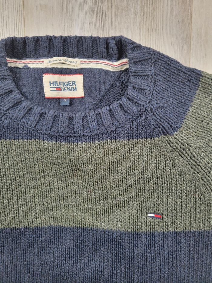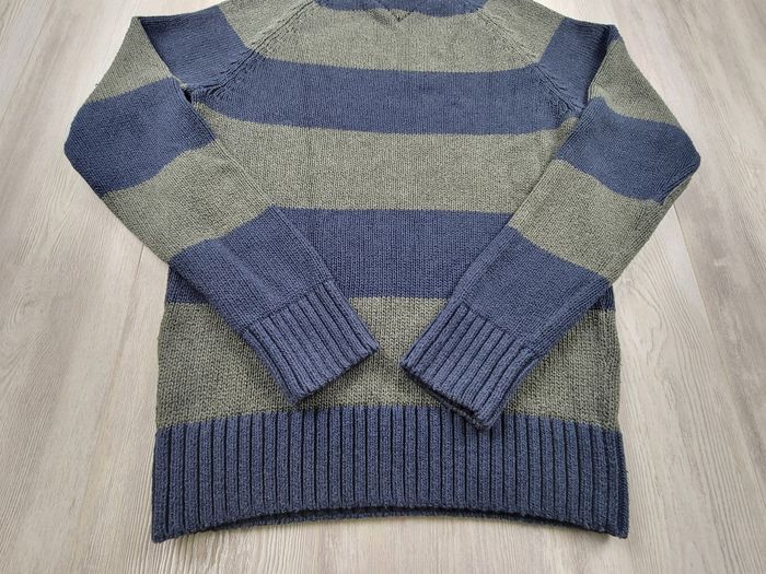 Pull Tommy Hilfiger Denim rayé bleu & vert – maille épaisse – S - photo numéro 1