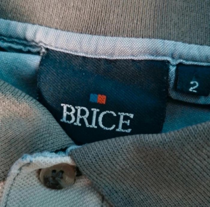 Polo rayé taille 2 marque Brice, longueur 67cm, largeur 54cm, longueur épaule à aisselle 20cm, largeur aisselle à aisselle 55cm, largeur épaule à épaule 44cm, (légère taches voir photo).