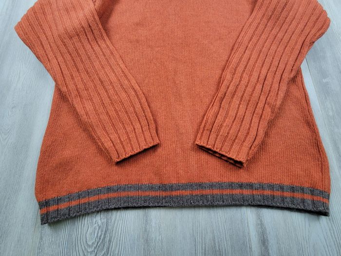 Superbe pull/sweat Tommy Hilfiger Denim à fermeture zippée intégrale, style vintage / varsity US. Couleur orange brûlé avec bandes grises sur les épaules et en bas. Maille épaisse et chaude, majoritairement en laine, idéale pour l’automne/hiver. • Taille : XL • Matière : 80 % laine, 20 % polyamide • Fabrication : Turquie • Manches longues • Fermeture full zip métal Tommy Hilfiger (impeccable) • Logo brodé “85” sur la poitrine • Étiquette tissu Hilfiger cousue sur la manche • Finitions soignées, maille de qualité Mesures à plat : – Épaules : 57 cm – Manches : 61 cm – Longueur : 70 cm Excellent état général, aucun trou, aucune tache. Coupe confortable, parfait aussi en oversize. Envoi rapide et soigné. #27-01