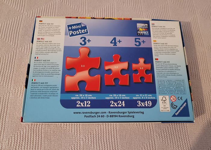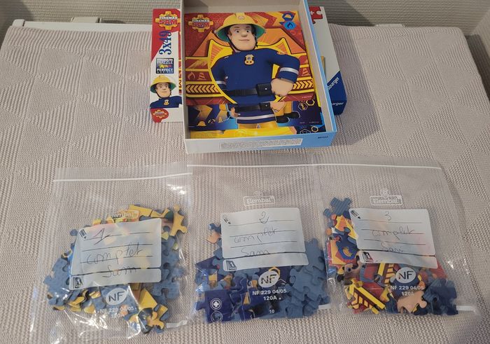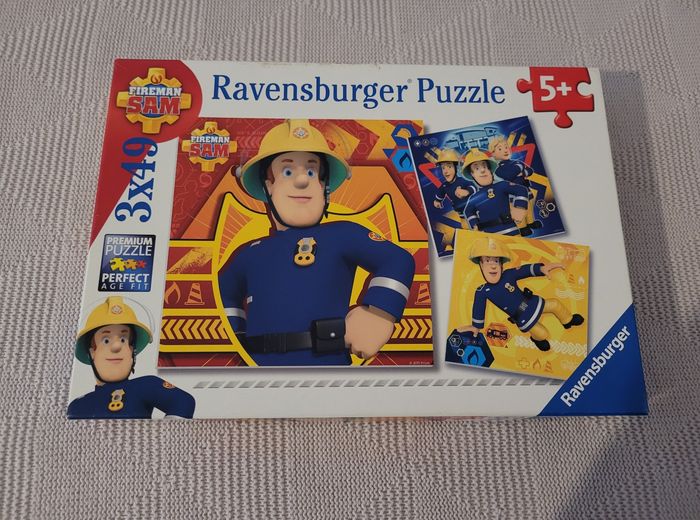 Je vends ce puzzle Ravensburger Fireman Sam de 3 × 49 pièces, idéal pour les enfants à partir de 5 ans .
