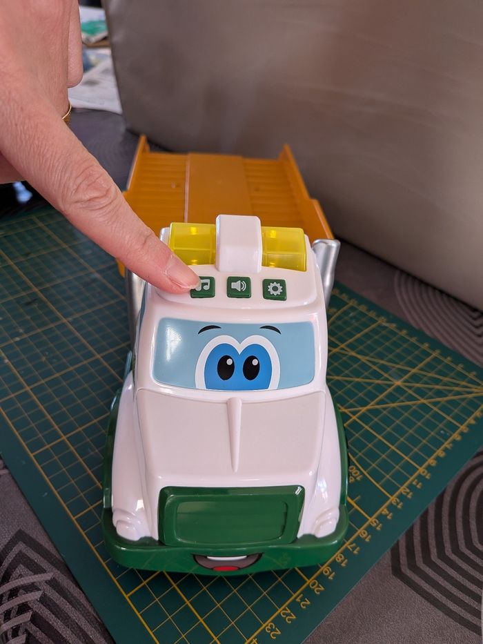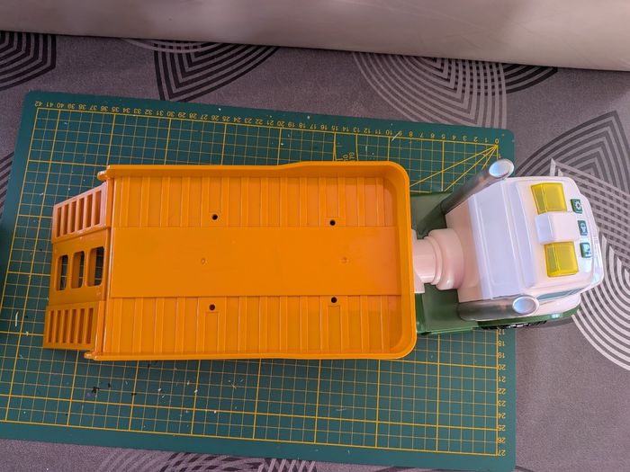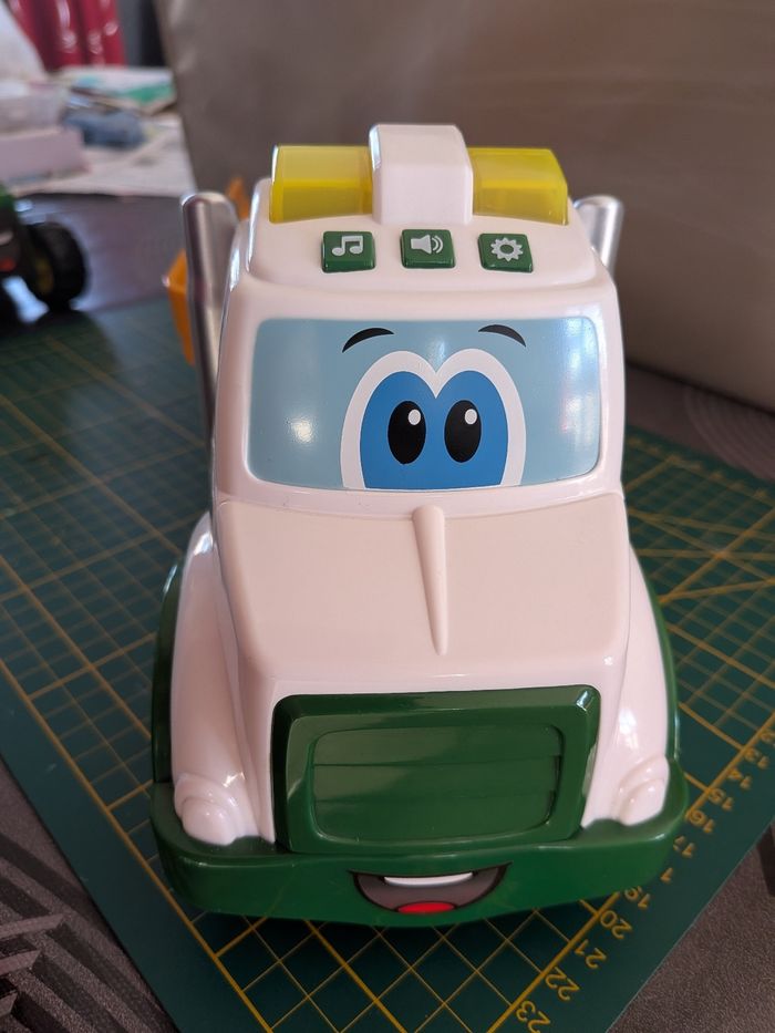 Complet, son et lumière fonctionnent. Très bon état, peu utilisé. Description : ENSEMBLE DE 3 PIÈCES : Un attelage facile à connecter, une rampe qui s'abaisse et se relève, une remorque orientable et un bras de flèche rotatif, les enfants vont adorer découvrir toutes les façons de jouer. Jouet idéal pour les jeux interactifs JOUET MUSICAL : Dotés de lumières et de sons pour stimuler les sens visuels et auditifs de votre bébé tout en le gardant éveillé, ces jouets à pousser sont idéaux pour lui procurer des heures de plaisir d'apprentissage. Ils sont également dotés de surfaces en plastique souple et de bords arrondis pour jouer en toute sécurité JEU DE CAUSE ET D'EFFET : Le jeu de transport Farmin' Friends mettra au défi la mobilité de votre enfant, tout en lui apprenant le concept de cause et d'effet, car les bébés le poussent sur ses grosses roues IDEAL POUR LES AMOUREUX DE LA FERME : Cadeau idéal pour initier les enfants aux tracteurs et aux jouets de ferme pour animaux ou pour compléter une ferme, adapté aux enfants de 18 mois et plus
