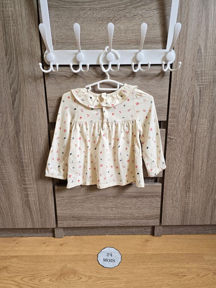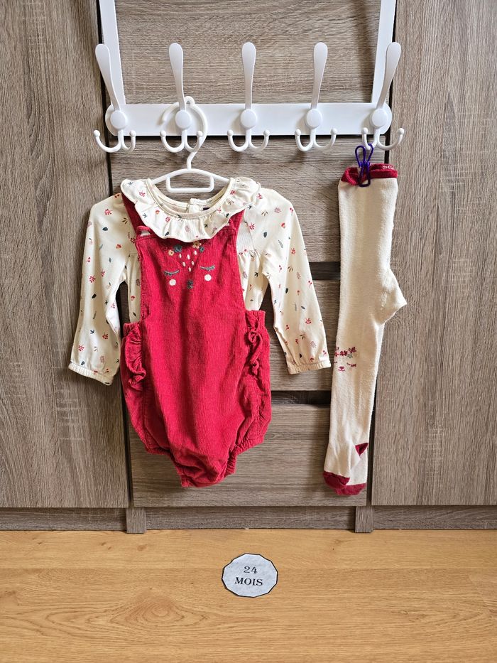 Lien direct vers les tailles équivalentes dans mon dressing : #fdhsarah24mois #fdhsarahSGMJ 📜 Ensemble comprenant : - Blouse de couleur crème/ blanc cassé. Il est à manches longues et présente un col à volants. Le tissu est orné d'un motif discret dans des tons de rouge et vert. Ref : GAORTENSE - Combi-short /salopette-short (type barboteuse) couleur rouge, type de petit renard brodé avec des petites oreilles 3D. Ref : - Collant rouge et blanc avec une tête d'animal, taille 21/22 Collection : James A Dit Taille 📏 : 24 mois 86 cm État 🔍 : Très bon état Marque 🏷️ : Sergent Major Je suis disponible pour toutes questions ou photos supplémentaires. 📦 L’envoi se fait le plus rapidement possible Bon Shopping