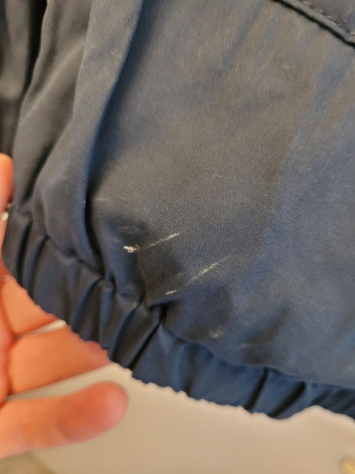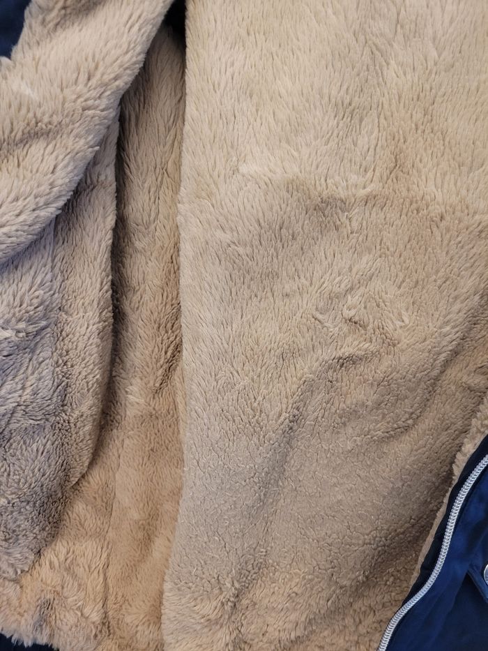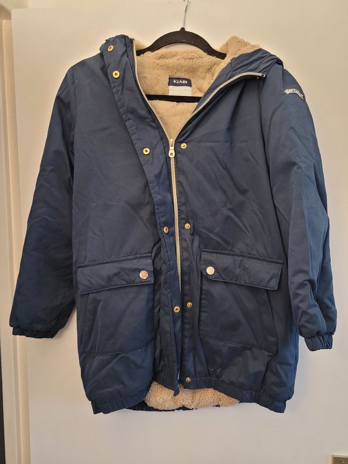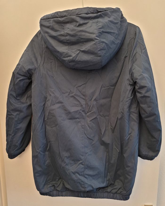 Je vends ce blouson d'enfant de la marque Kiabi, de couleur marine à capuche.