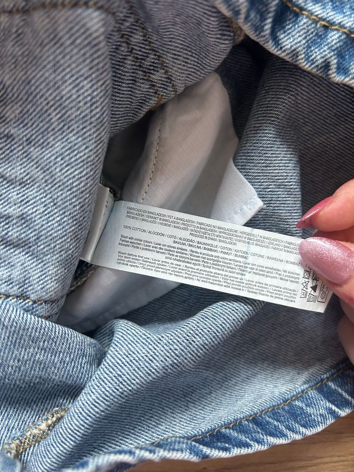 • Détails : 100% coton, taille élastique froncée, deux poches à l'avant et deux poches à l'arrière, légers détails d'usure décorative (distressed denim).