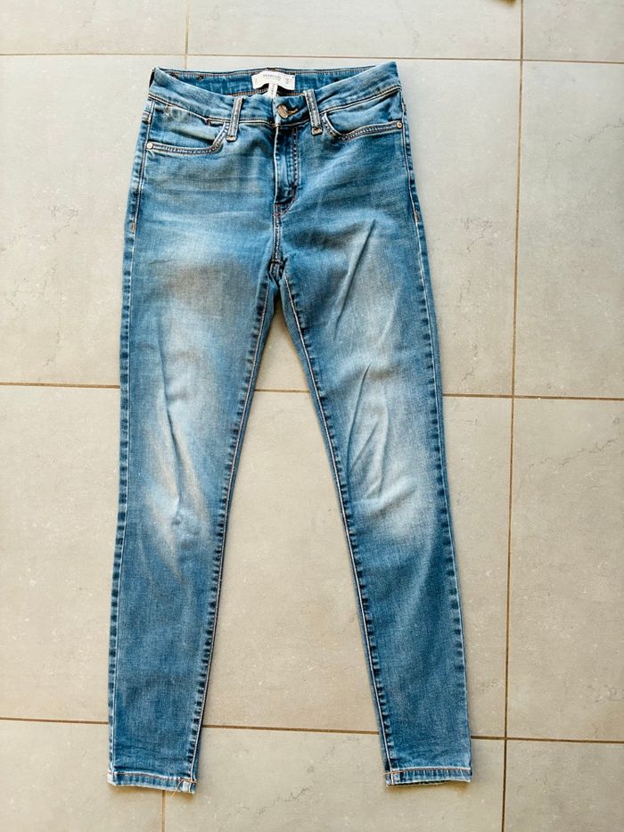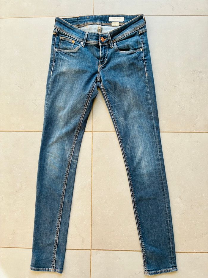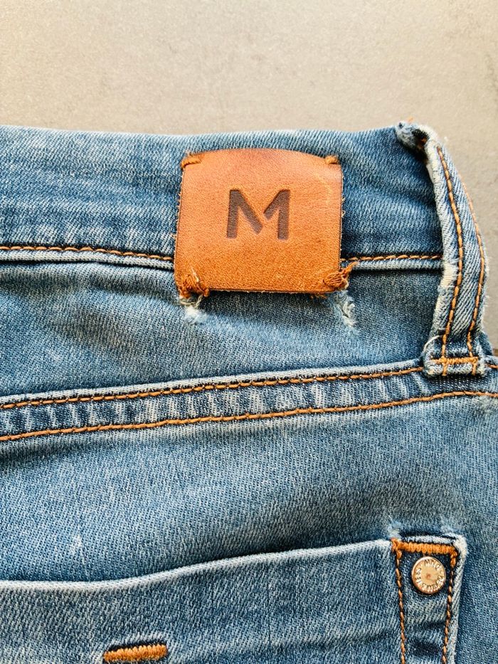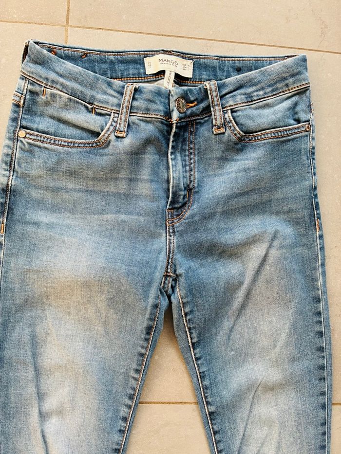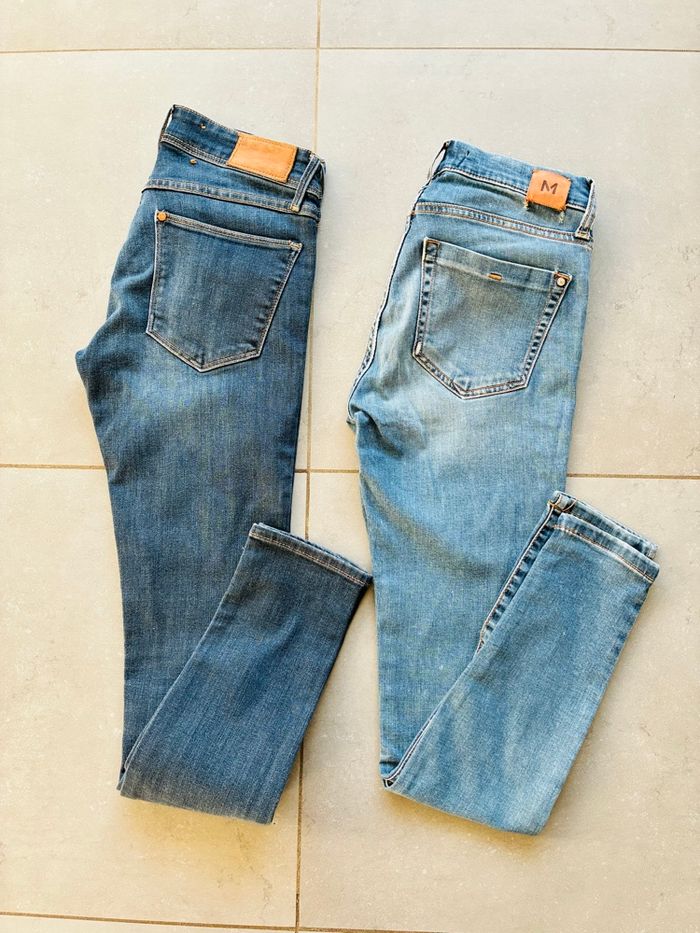 * bleu clair : Mango Elektra, accrocs sur la jambe arrière gauche et étiquette également (photos à l’appui) (offert)