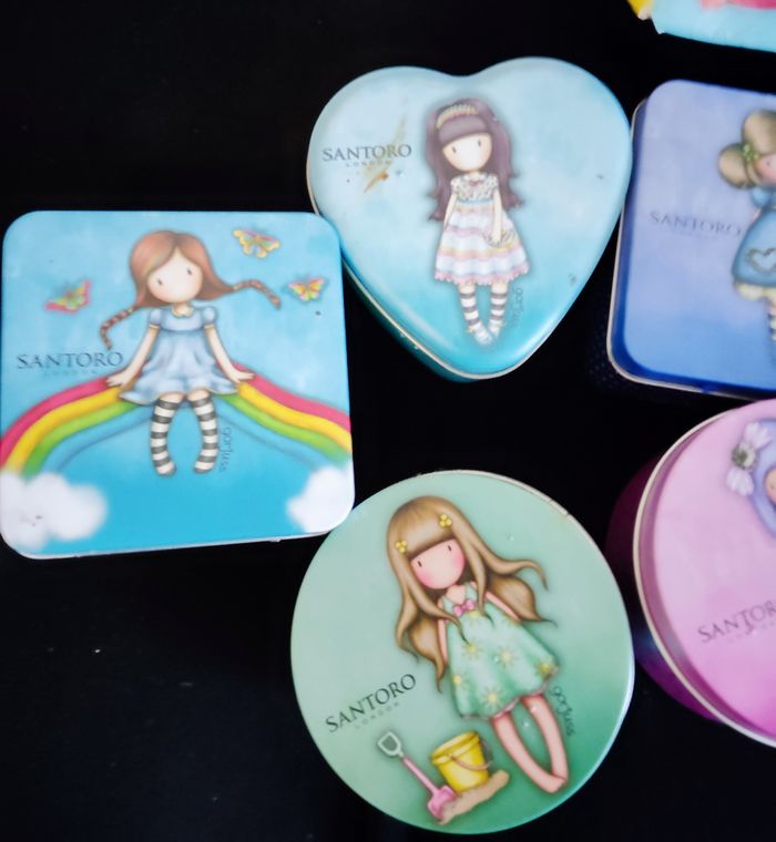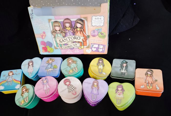 Lot de 12 boîtes pâtes santoro . Je ne sépare pas la collection complète. Je vends le lot complet. Les pâtes à l intérieur ont durci . Je vous les laisse comme ça vous aurez le choix entre jeter les pâtes ou les récupérer avec un peu d eau. Les boîtes sont sublimes et à collectionner. La vente concerne donc les boîtes . Je cède le lot complet à 35 euros . Boîtes pour slime ou perles ou dents ou billes ou bijoux ou autre .... #santoro #boite #collection #fille #mode #rangement #boiteslime #boiterangement #boitebijoux #boitedent #boitebilles #boiteperles