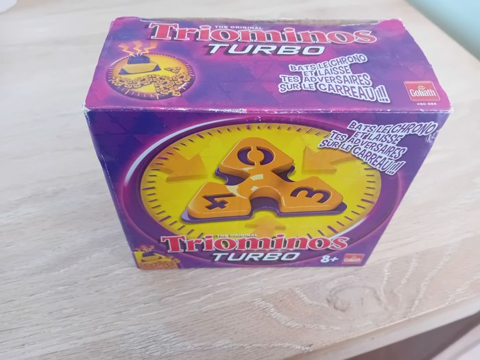 Triominos Turbo de marque Goliath comme neuf (le jeu n'a servi qu'une fois mais la boîte est abîmée). Dès 8 ans. Jeu complet. #jeusigtmoi #jeusocietesigtmoi