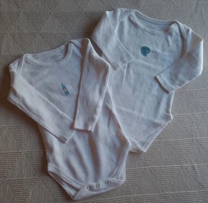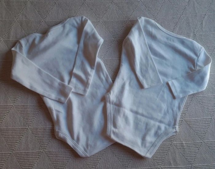 Je vends ce lot de 2 bodies blancs pour bébé de 6 - 9 mois / 74 cm.