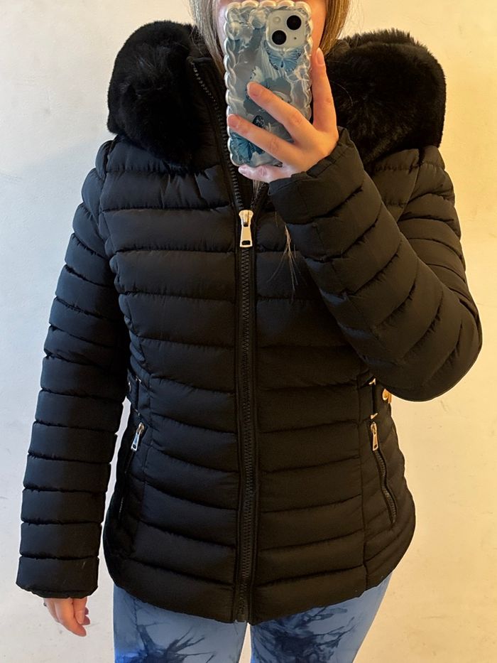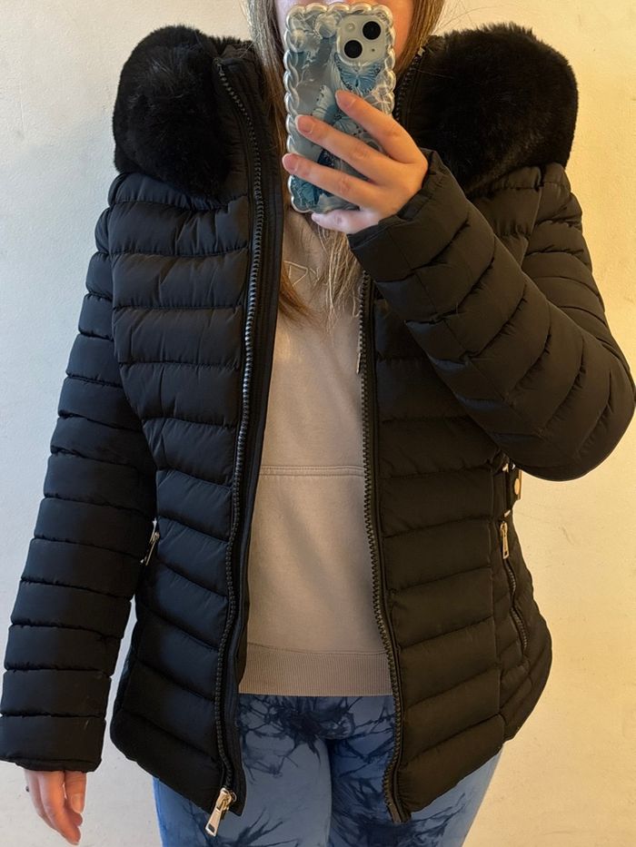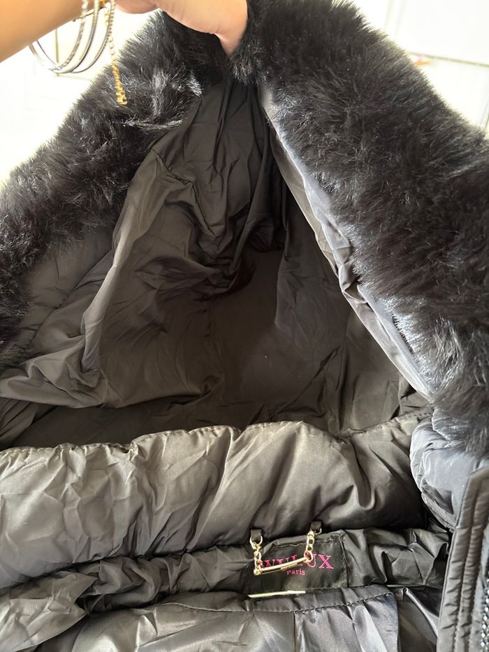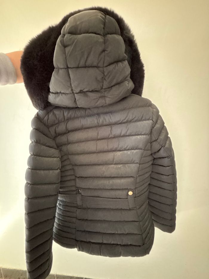 Beau manteau noir avec belle capuche à fourrure noir, porter une seule fois pour l'essayer mais trop petite pour moi.