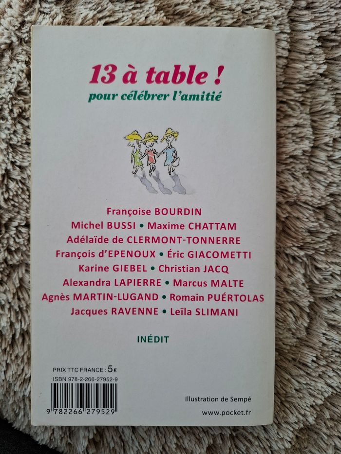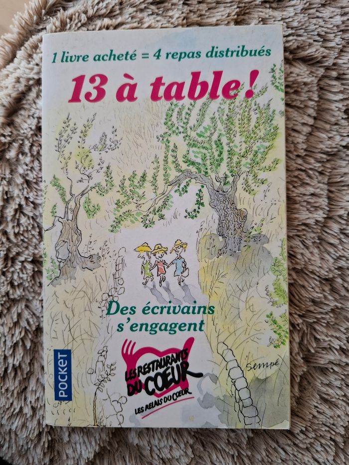 Livre 13 à table ! Les restaurants du cœur en bon état Éditions Pocket Histoires inédites racontées par de grands auteurs comme Françoise BOURDIN, Michel BUSSI, Maxime CHATTAM, Karine GIEBEL, Agnès MARTIN-LUGAND,.. Prix du livre 5 euros