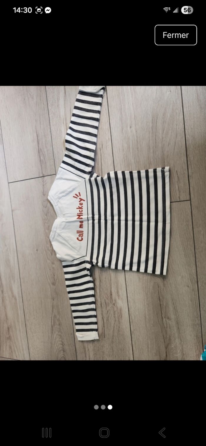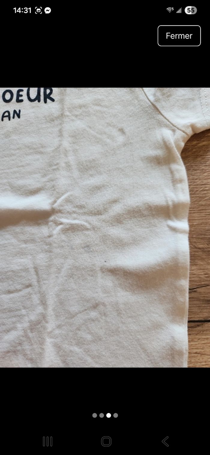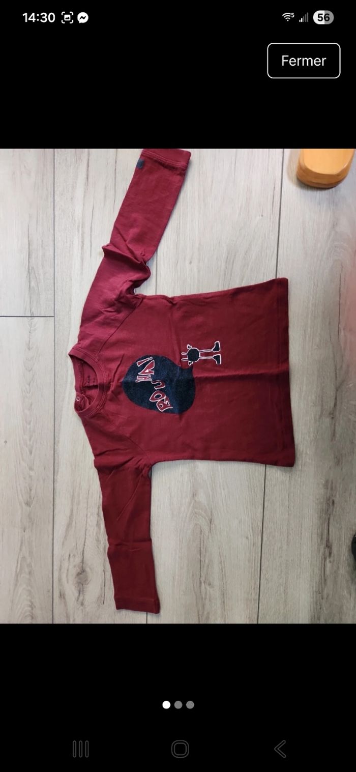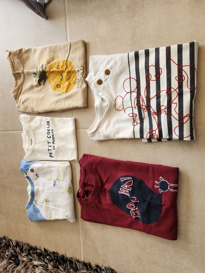 Lot de 5 vêtements : 2 T-shirt manche courte et 3 T-shirt manche longue. En bon ou état satisfaisant (défaut pris en photo). Taille 36 mois. Différentes marques de vêtements