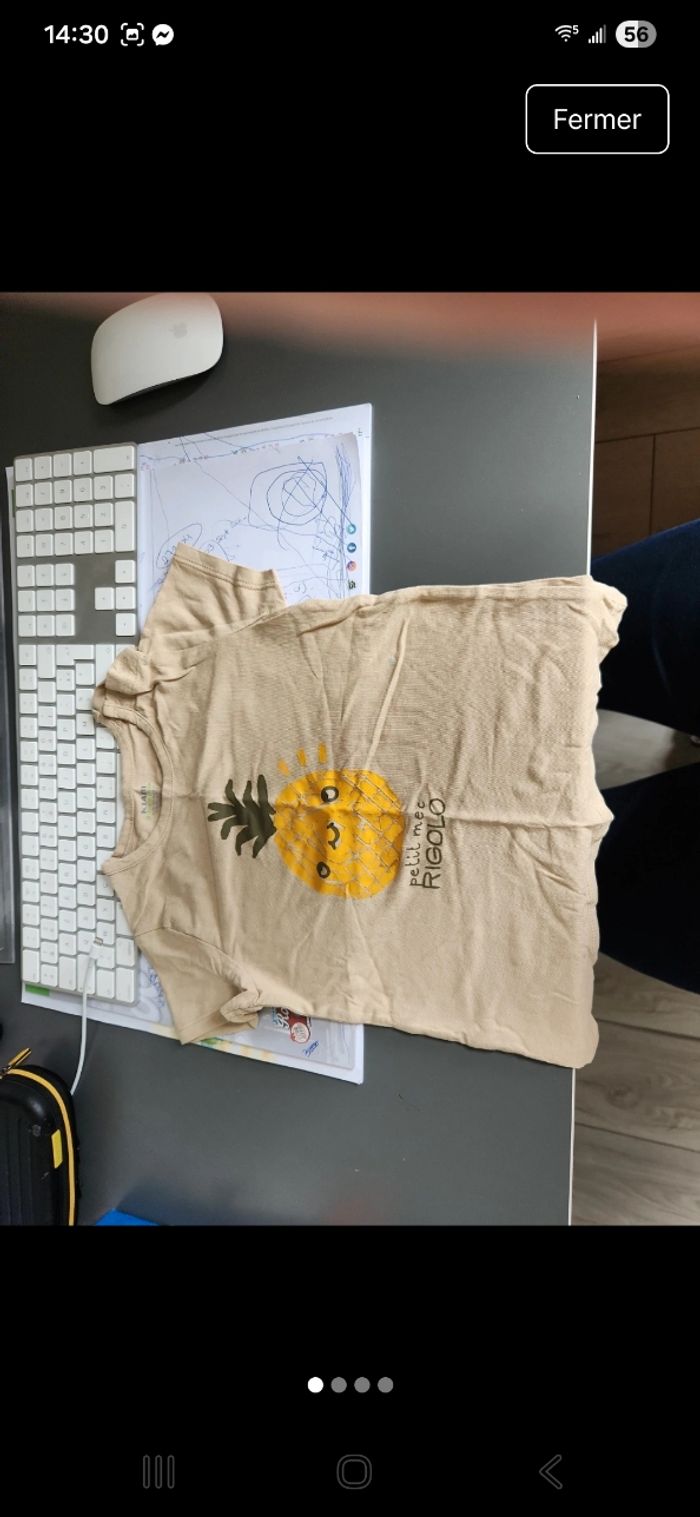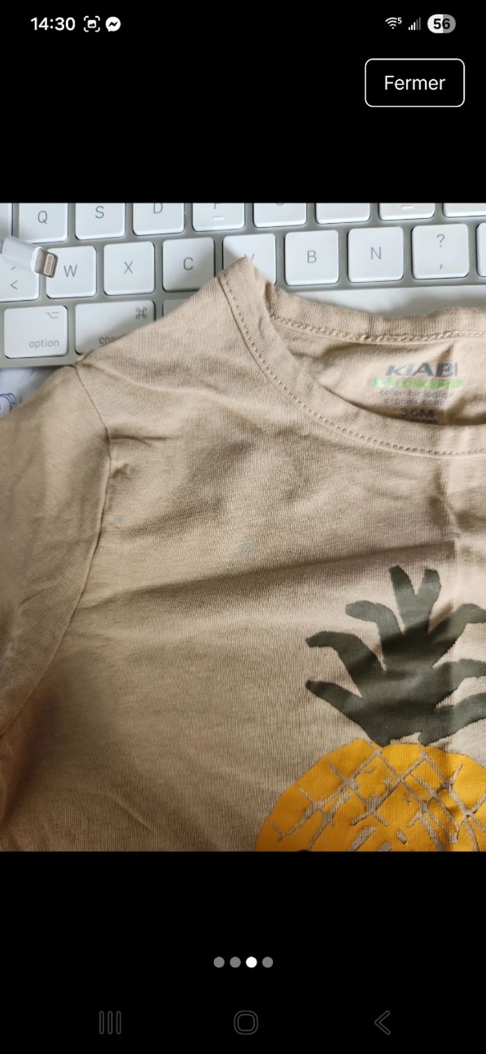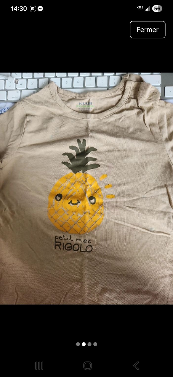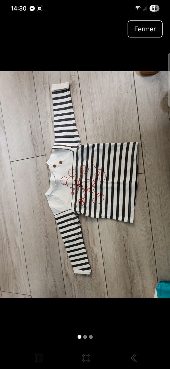 Lot de 5 vêtements : 2 T-shirt manche courte et 3 T-shirt manche longue. En bon ou état satisfaisant (défaut pris en photo). Taille 36 mois. Différentes marques de vêtements