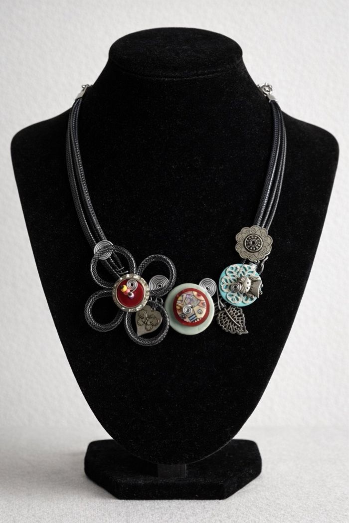 Très joli collier fantaisie au design original et unique, composé de plusieurs éléments décoratifs :