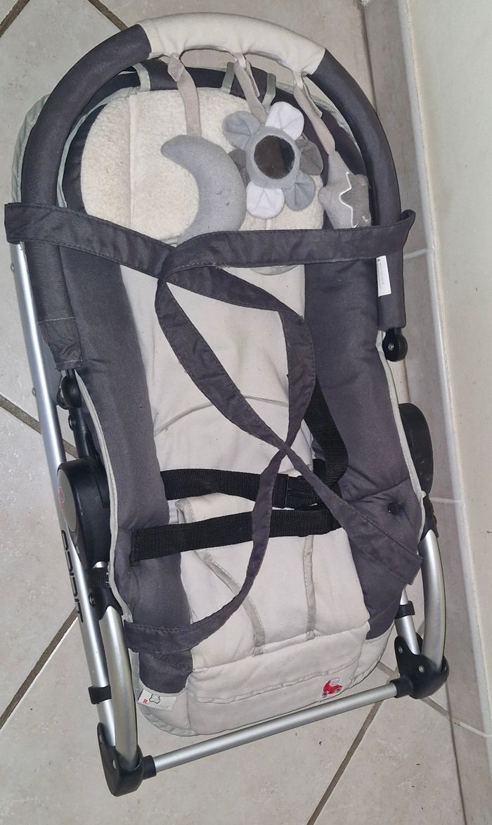 Transat Renolux très bon état ! Dès la naissance • Inclinaison du dossier d’une main • Commande de pliage extra-plat avec une seule main • Système fixe ou balancelle, stable et pratique d’usage • Cale-tête rembourré • Arche d’éveil avec jouets amovibles • Châssis ultra léger 100% aluminium