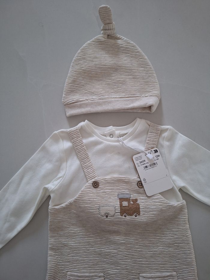 Ensemble avec bonnet neuf avec etiquette. Taille 12 mois.