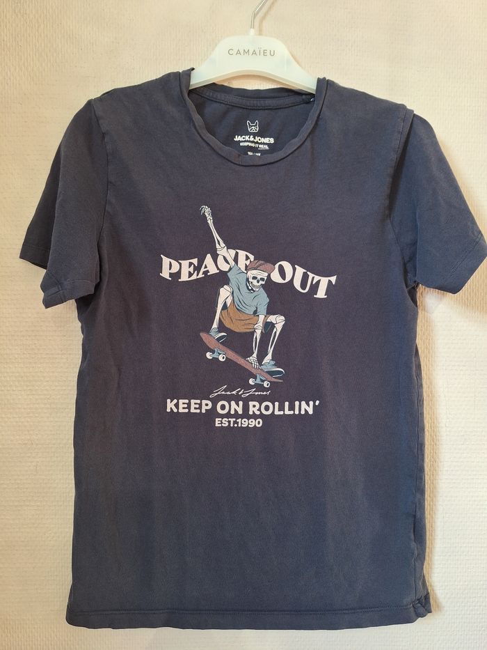 Je vends ce t-shirt enfant de la marque Jack & Jones, de couleur bleu foncé.