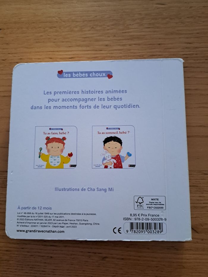 Je vends ce livre pour enfants "Tu as faim, bébé ?" de la collection "Les bébés choux". - Titre : Tu as faim, bébé ? - Collection : Les bébés choux - Genre : Livre pour enfant - Éditeur : Nathan Très bon état N'hésitez pas à me contacter pour plus d'informations !