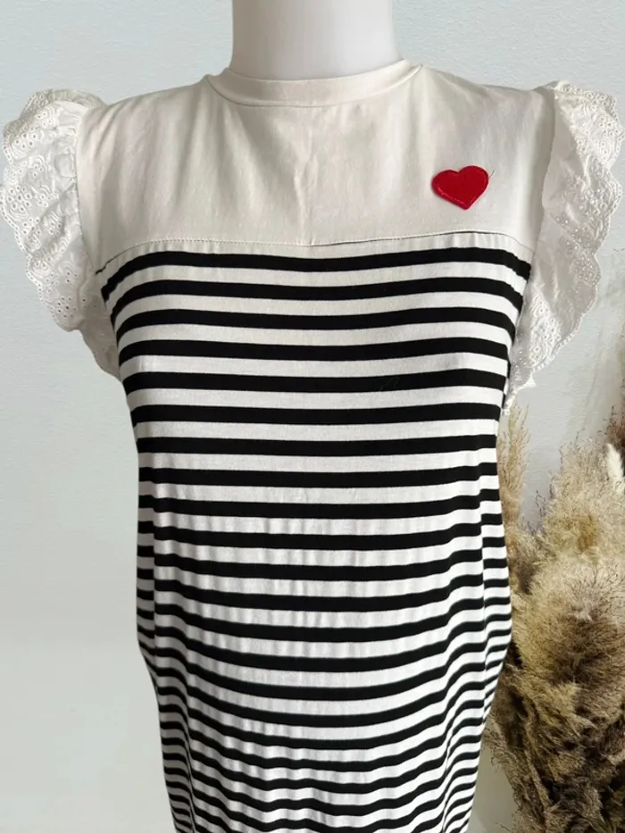 Robe marinière de grossesse T46 cœur rouge et dentelle