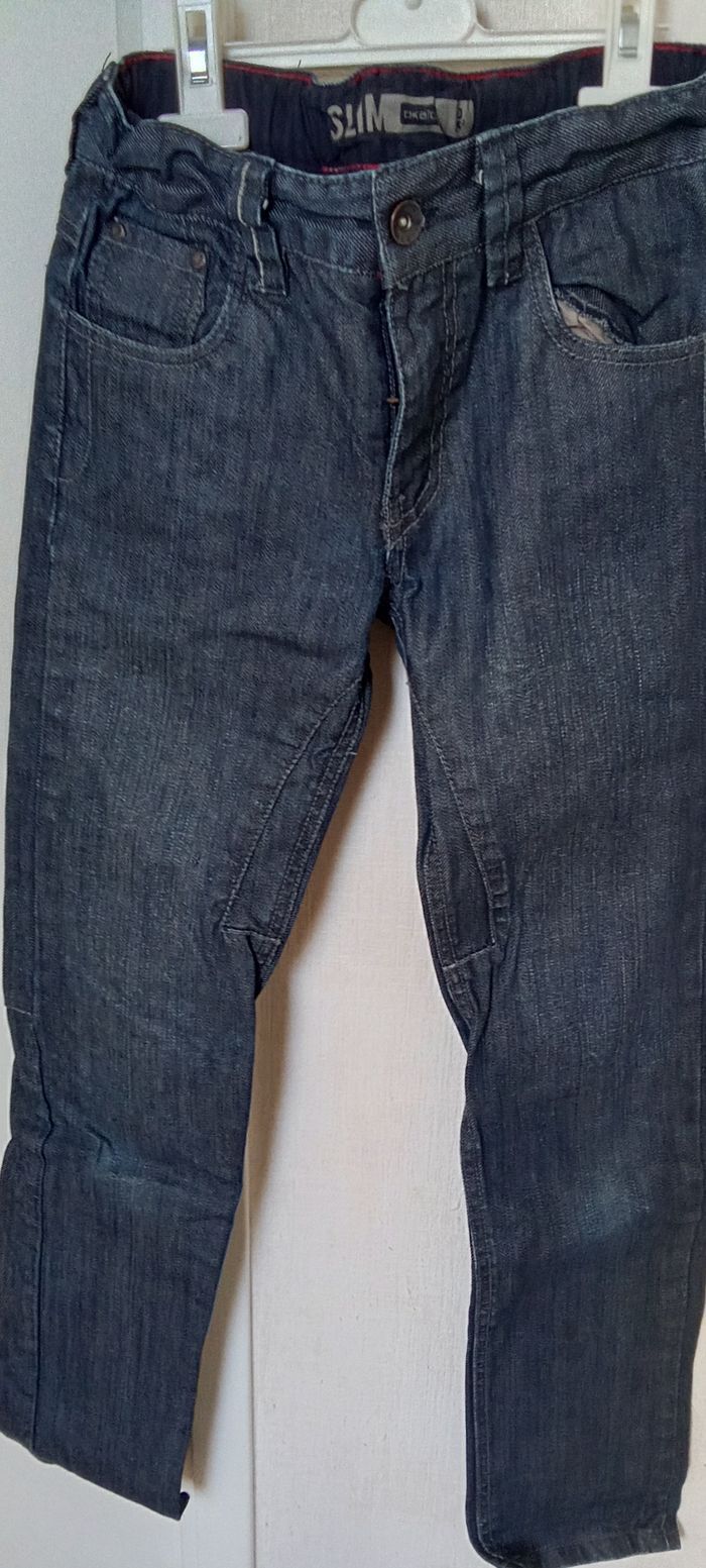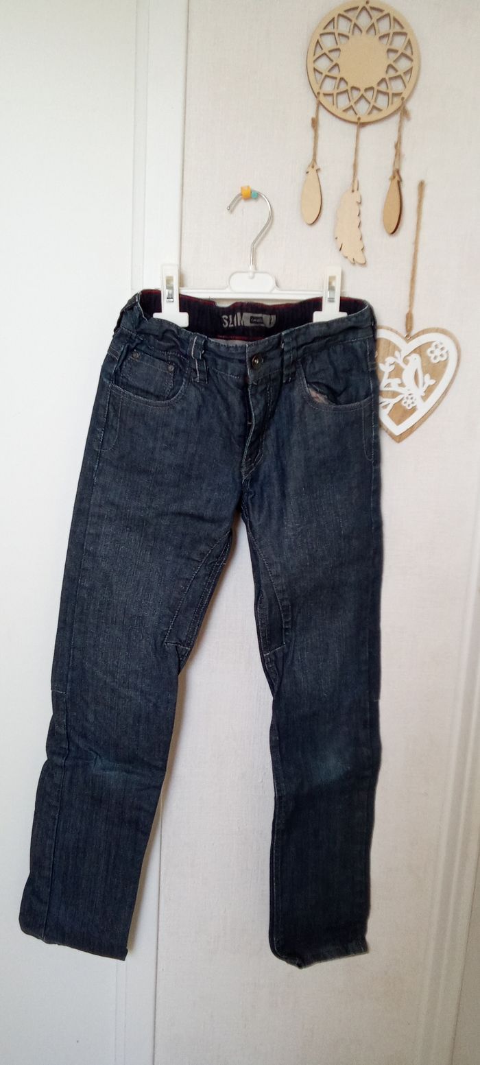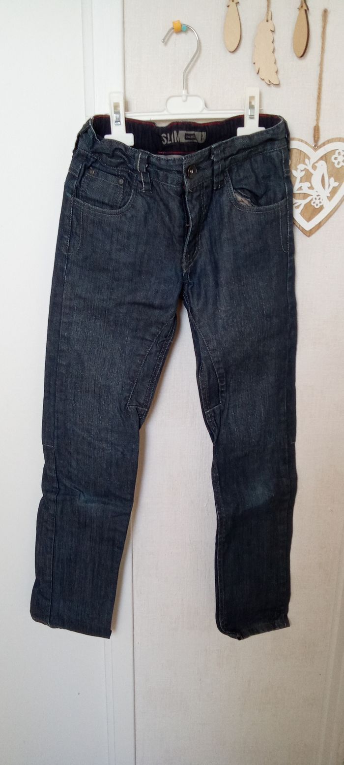 Jeans Okaïdi effet ciré pour garçon en 10 ans, réglable à la taille. Bon état général. De nombreux autres vts garçon mm taille également à vendre ds mon dressing et réduction activée