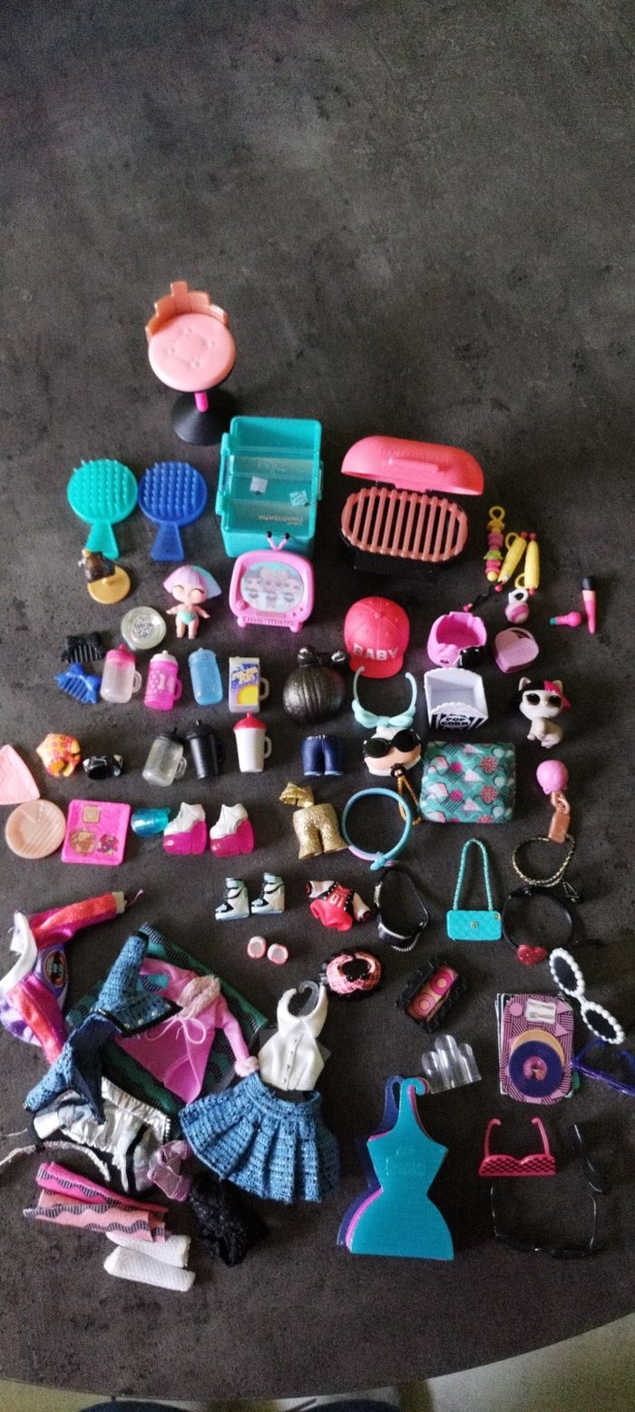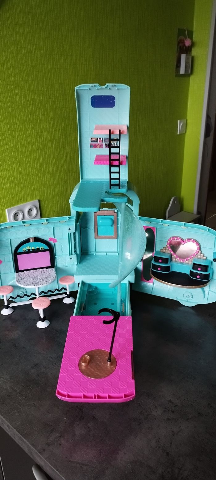 Camping car LOL plus 10 poupées LOL,2 grandes et 8 Petites, plus différents accessoires vêtements, cintres, chaussures.............., le tout en très très bon état