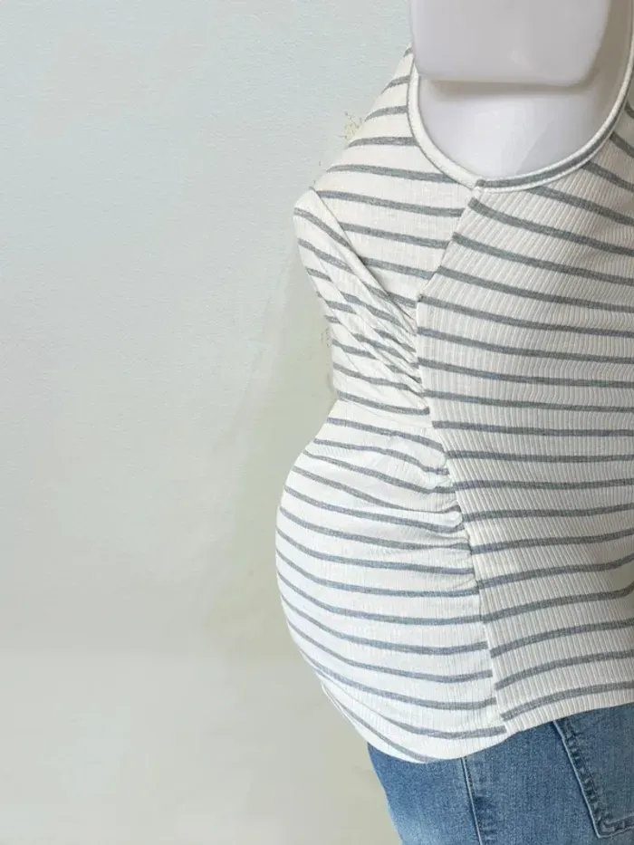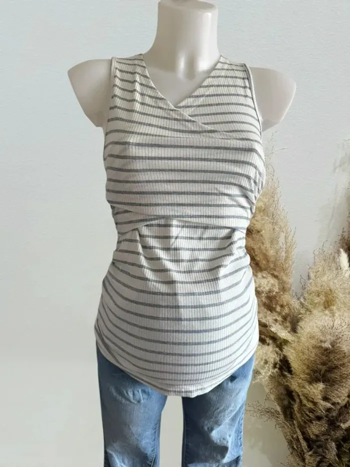Top débardeur de grossesse et d’allaitement gris blanc T36