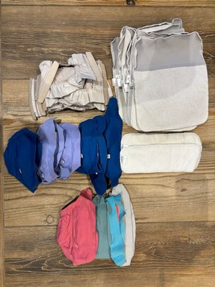 Lot 9 couches lavables Hamac 4 t mac + 7 nacelles séparables taille 1 (3 à 7 kg) 5 normales (2 usures voir photo) taille 1 13 micro fibres absorbants taille 1 2 boosters épais pour la nuit taille unique