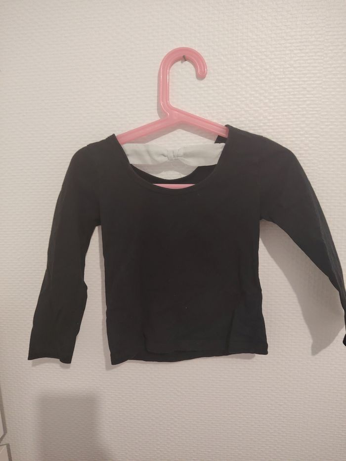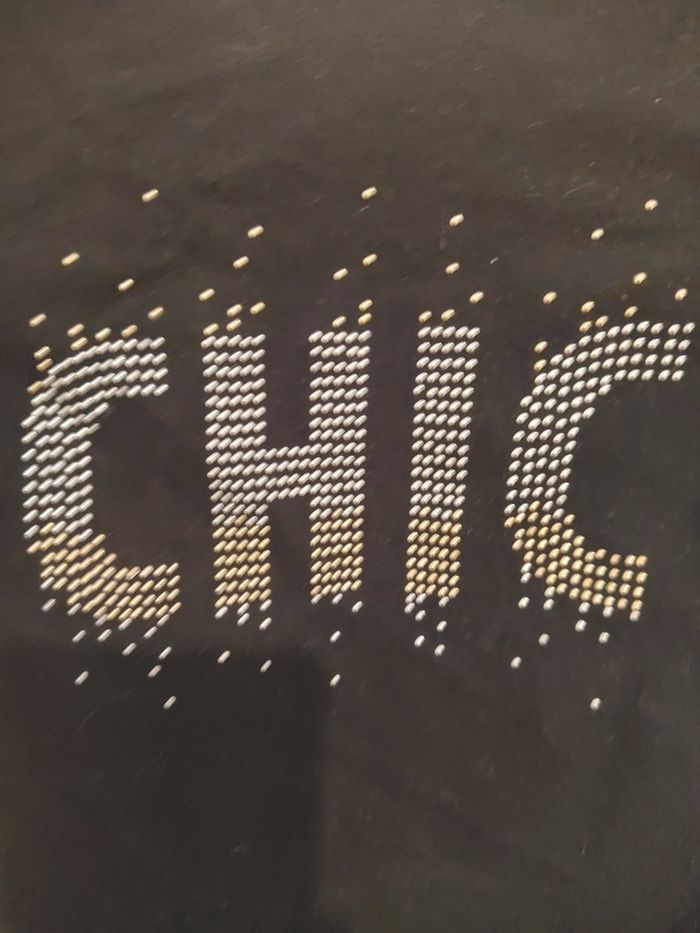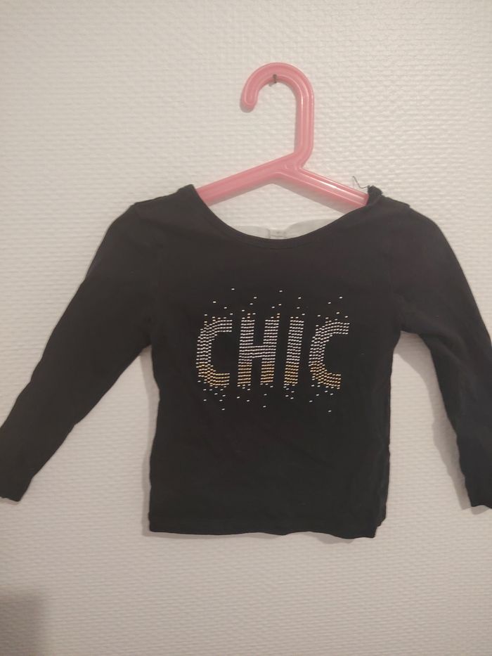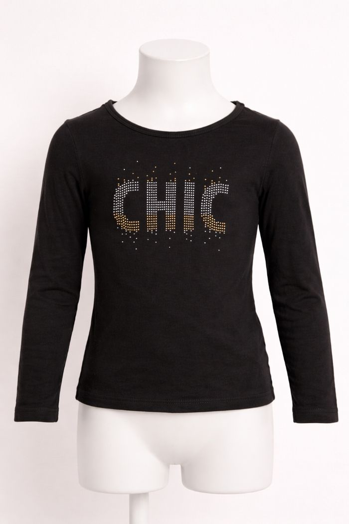 Joli t-shirt manches longues pour fille, coloris noir, avec inscription “CHIC” en strass argentés sur le devant.