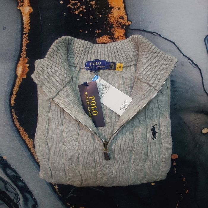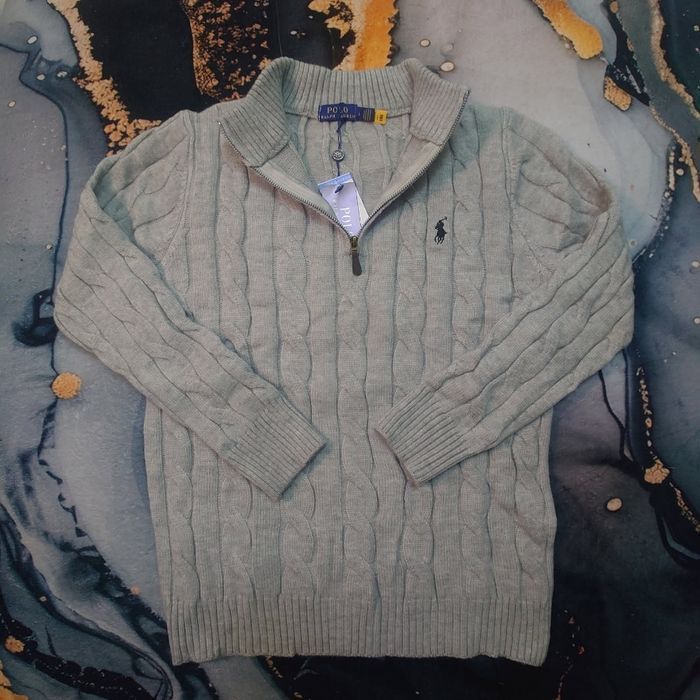 Half zip Ralph Lauren gris 1/4 col camionneur torsadé logo brodé noir taille L - photo numéro 1