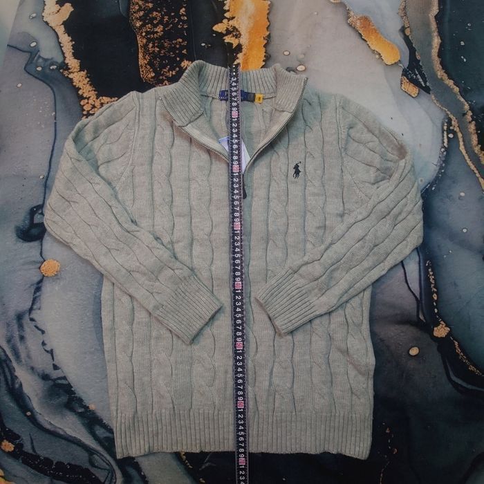 Half zip Ralph Lauren gris 1/4 col camionneur torsadé logo brodé noir taille L - photo numéro 9