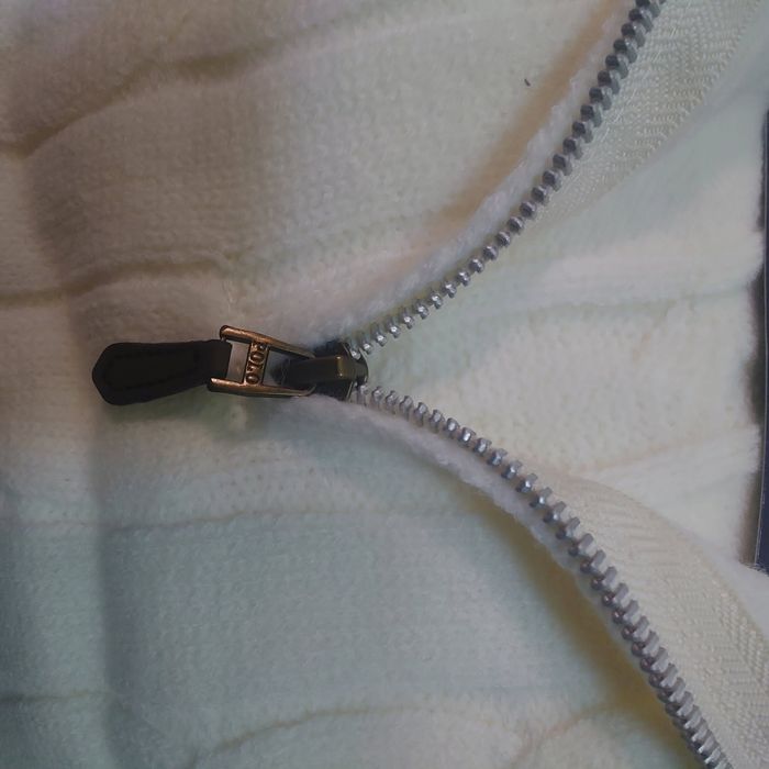 Pull camionneur zippé 1/4 signé Polo Ralph Lauren coupe slim, couleur blanc, taille XL.